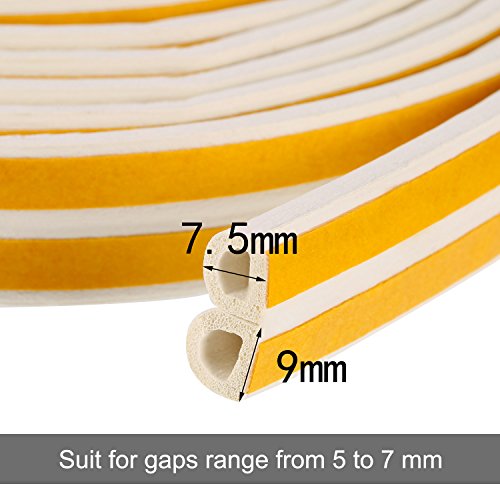 2 Rolls D Shape 9 x 7.5 mm Foam Adhesive Rubber soundproofing Weatherstrip Window Adhesive Seal Weather Stripping EPDM Tape Draught Strip, 10 m in totale