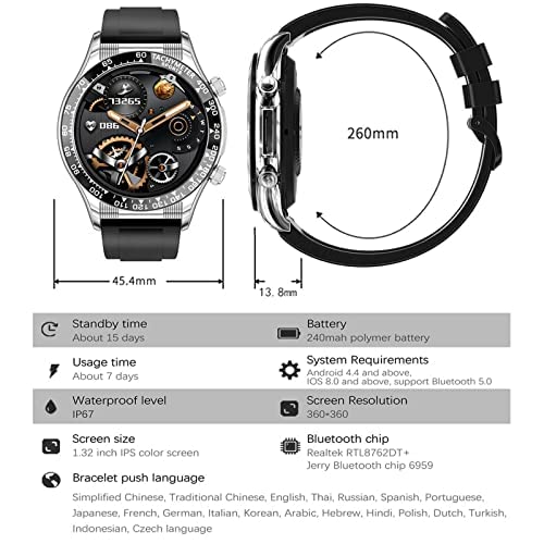 RollsTimi Smartwatch Uomo Chiamata Bluetooth e Vivavoce, Fitness Tracker Con Cardiofrequenzimetro, Resistente All'Acqua Ip67 Sport Messaggio Di Notifica Per Android/Ios, 1,32" Hd Full Touch Screen