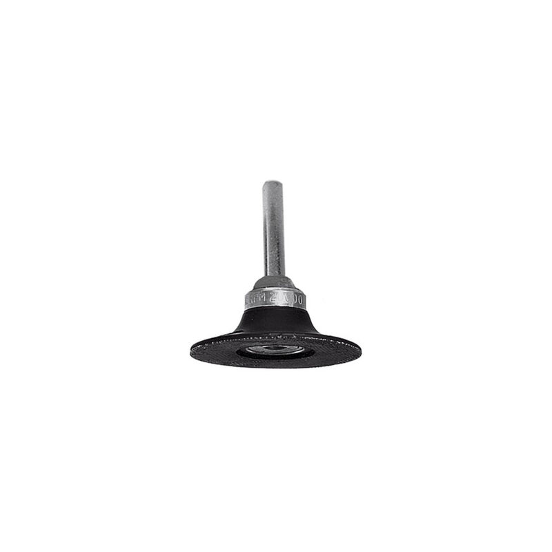 Per l'alloggiamento di mole abrasive con sistema di serraggio rapido con filettatura esterna (Roloc™, Combidisc®). Platorello in gomma con attacco 1/4 pollici integrato e gambo da 6 mm. Montaggio su mandrino M14 con adattatore n. art. 554081. Il sistema di cambio rapido Roloc™ consente di sostituire l'utensile in sicurezza “con una rotazione” della mano in brevissimo tempo. Uso: Per smerigliatura razionale di piccole superfici anche con contorni diversi. Riduzione dei costi dei processi di lavoro a più fasi in seguito ai tempi ridotti d'allestimento. Nota: Smerigliatrici angolari adatte vedi n. art. 079325. Dati tecnici Per sistema di cambio rapido Roloc™ Attacco lato utensile Sistema di serraggio rapido filettatura esterna Attacco lato macchina ⌀ codolo 6 mm Tipo di prodotto Platorello di supporto Numero massimo giri, min-1 25.000 ⌀ Gambo, mm 6 ⌀ Esterno, mm 50