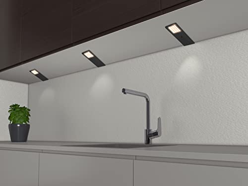 Rolux DF1909 Set di 3 lampade a LED da incasso, 3 W, luce bianca calda, con interruttore a infrarossi dimmerabile (IR), con trasformatore adatto, convertitore in alluminio, 5 mm, piatto, ad
