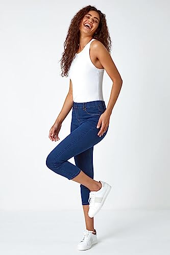 Roman Originals - Pantaloni da donna in cotone elasticizzati, a tre quarti, lunghezza 3/4, stile casual, per feste Indaco 50