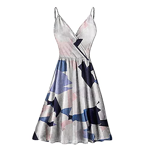 Romantic, vestito da donna, lungo al ginocchio, con scollo a V, stampa floreale, abito estivo da cocktail, Donna, argento, S