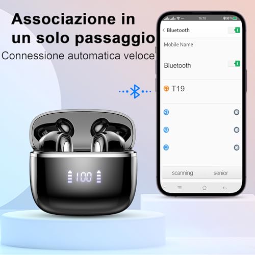 Nuovo Bluetooth 5.3 e accoppiamento rapido: ROMOKE T19 cuffie Bluetooth è dotato di chip Bluetooth 5.3 di ultima generazione, che forniscono una connessione più veloce e stabile. Il nuovo standard Bluetooth 5.3 offre una migliore protezione contro i segnali di interferenza per un'esperienza audio perfetta durante le chiamate. Le nostre auricolari Bluetooth si accoppiano automaticamente con il tuo dispositivo non appena le tiri fuori dalla scatola dopo la prima connessione.