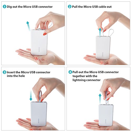 Romoss - Power Bank con USB C, cavo integrato, 3 output o input, batteria esterna con adattatore USB tipo C per la maggior parte dei telefoni cellulari, smartphone, tablet e altri dispositivi 5000mAh 11.5000 mAh modello old