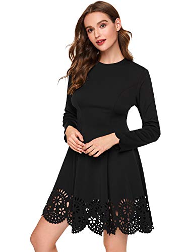 Romwe - Abito da donna elegante, con motivo forato, gonna a maniche lunghe, lunghezza al ginocchio