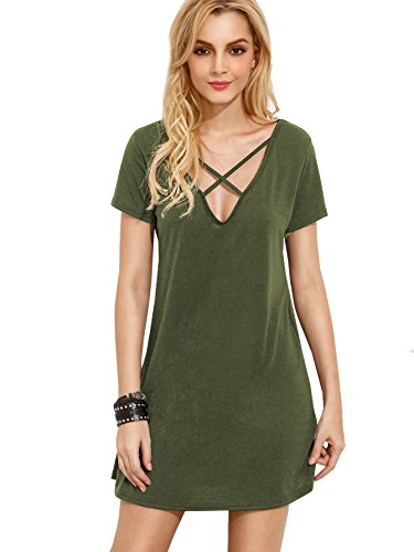 ROMWE Vestito Donna Linea A Manica Corta Collo Rotondo