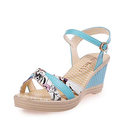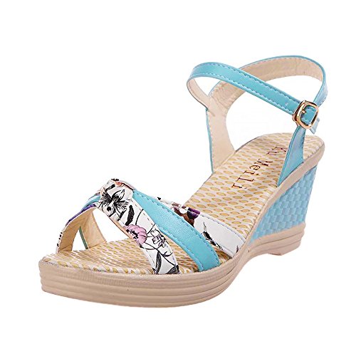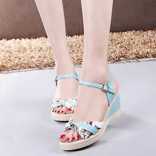 Ronamick - Sandali da donna con zeppa, estivi, con tacco alto, sandali con tacco alto, sandali da donna (34, blu)