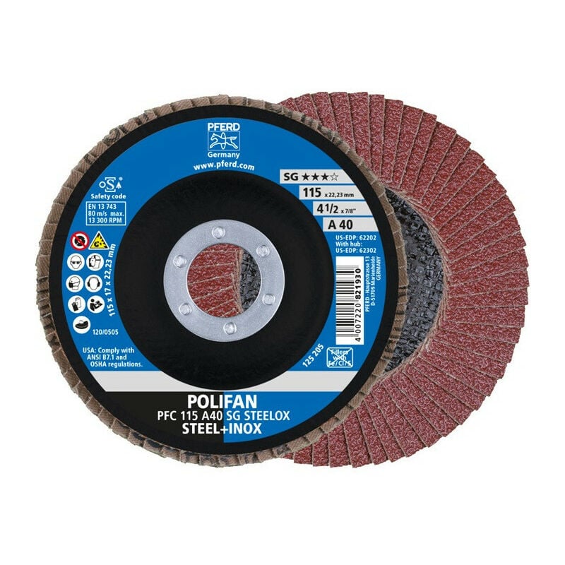 Corindone normale - utensile per lavori di smerigliatura universali su acciaio inox (INOX), acciaio, plastica, legno - con elevata capacità di asportazione e buona durata - per la smerigliatura di superfici e la lavorazione dei cordoni di saldatura - si ottengono ottimi risultati di smerigliatura anche con una bassa pressione di contatto - foro 22,23 mm Ø Ulteriori caratteristiche tecniche: - Alesaggio: 22,23 mm - Velocità massima: 13300min-¹