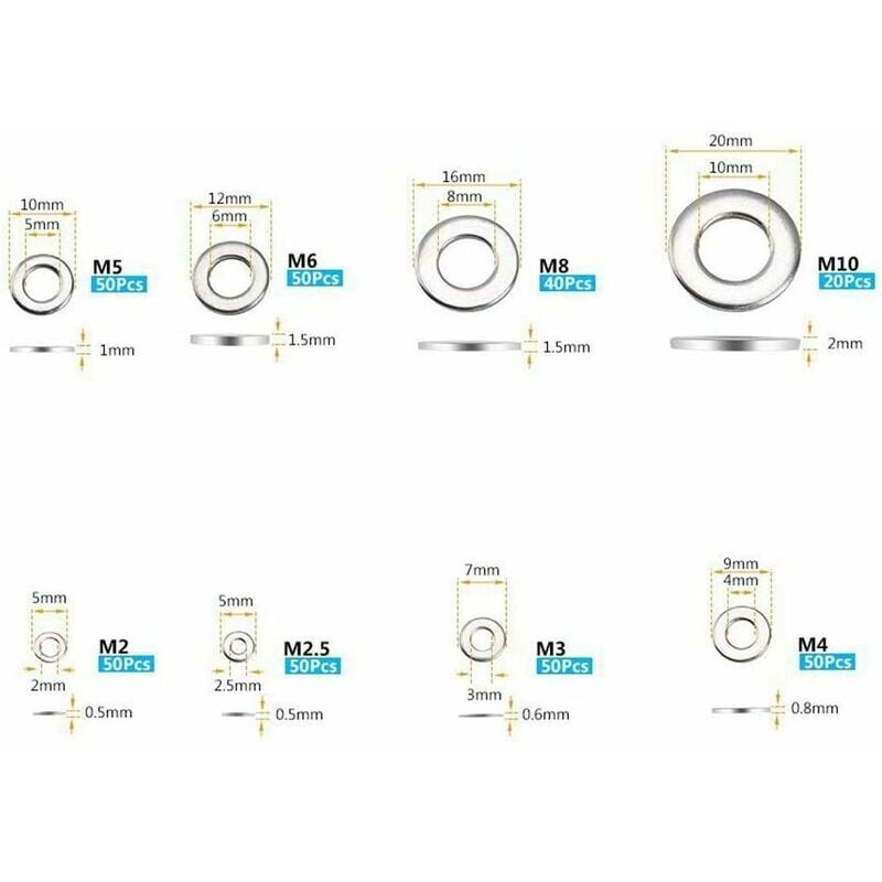 Informazioni su questo articolo. Alta precisione: kit assortimento di rondelle piatte M2, M2.5, M3, M4, M5, M6, M8, M10 ad alta precisione, 360 pezzi in totale. Materiale: in acciaio inossidabile, trattato in superficie, assortimenti di rondelle, buona resistenza alla corrosione e alla ruggine. Funzione: la rondella di bloccaggio può essere applicata per disperdere la pressione della superficie di supporto del dispositivo di fissaggio come come bulloni per proteggere la superficie della parte collegata, inoltre, può ridurre l'attrito, prevenire perdite, isolare, prevenire l'allentamento e altro ancora. Assortimento di rondelle: come accennato in precedenza, la rondella piatta è perfetta per collegamenti elettrici, varie parti meccaniche, usi automobilistici e marini, ecc. Servizio e garanzia: ogni prodotto del nostro negozio offre un servizio post-vendita completo. Qualità e protezione del rimborso, qualsiasi domanda, non esitare a contattarci. Vedi maggiori dettagli.