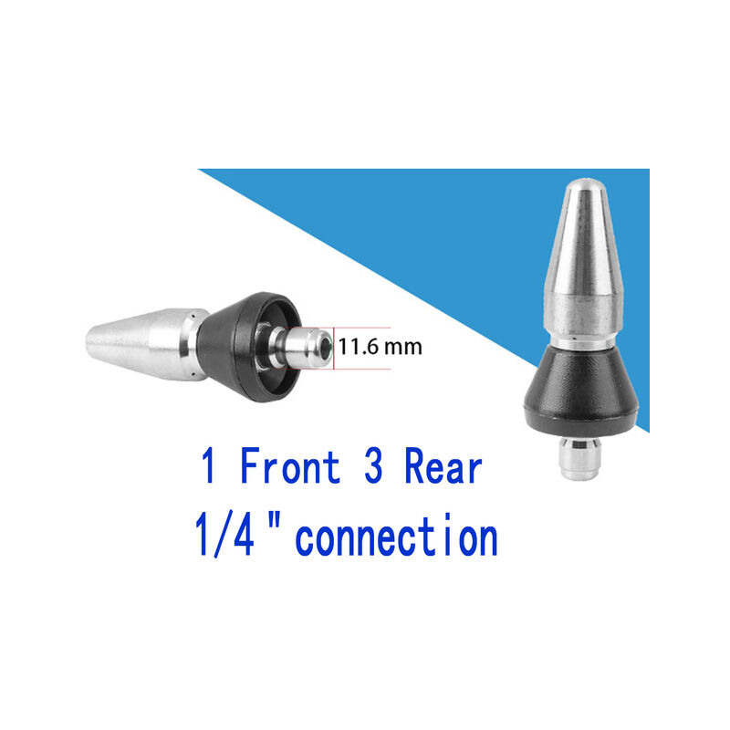 Caratteristiche: ● Standard di 1/4 "o 3/8" di collegamento rapido, facile da collegare a tubo o bacchetta● Design durevole fogna a getto ugello● 1 anteriore jet a 0 ° che cancella i blocchi, 6 posteriore/3 posteriore getti a 30 ° a filo detriti allentato da la parte anteriore jet● Materiale: Acciaio Inossidabile e Nylon, costruzione in acciaio inox resistente Alla Corrosione● Pressione fino a 5000PSI, acqua Calda fino a 310 ° F● All'indietro porte drive l'ugello in avanti e porte a filo detriti mentre in avanti esplosioni in e rompe zoccoli e detriti.● Ideale per generale tubo di acqua di lavaggio e la pulizia, fornisce un eccellente effetto di pulizia, morbido e pulito fogna bloccato, come ad esempio: olio blocchi, sabbia fine, belle ghiaia blocchi e generale dei rifiuti di ostruzione Descrizione del prodotto: Tipo: 1 in avanti jet e 6 posteriore getti/1 in avanti jet e 3 posteriore gettiColore: Nero e ArgentoMateriale: Acciaio Inossidabile, di NylonPressione massima: 5000 PSI, di