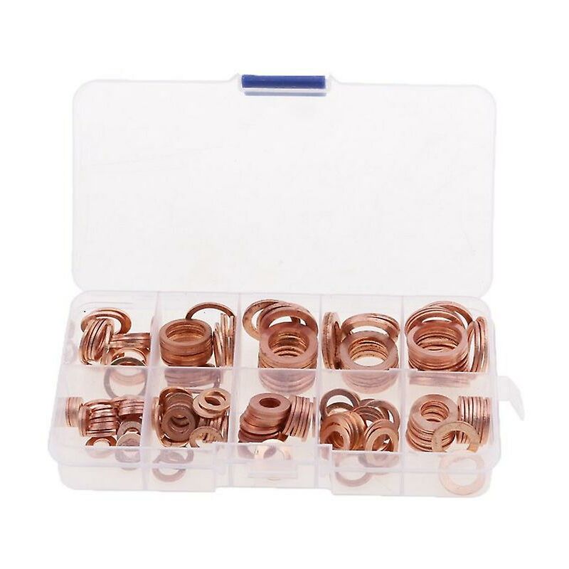200 pezzi di rondelle in rame anello piatto tappo della coppa guarnizione paraolio assortito set totale di 200 pezzi forniti in una scatola, facile da trasportare Realizzato in rame premium, punto di fusione fino a 1083 gradi Celsius. Buona conduttività elettrica e conducibilità termica Set di rondelle per tappo coppa per adattarsi a tutti i tipi di motori se automobili, barche, generatori, macchinari e fabbriche Colore: rame Specifica: Dimensioni: (I/D x O/D x Profondità) M5*9*1 30 pezziM6*10*1 30 pezziM6*12*1 20 pezziM8* 12*1 20 pezziM8*14*1 20 pezziM10*14*1 20 pezziM12*16*1 20 pezziM12*18 *1.5 20 pezziM14*18*1 20 pezziIl pacchetto include: 200 pezzi x guarnizione in rame Scatola 1 pezzo Solo il contenuto della confezione sopra, altri prodotti non sono inclusi .Nota: riprese luminose e display diversi possono far sì che il colore dell'articolo nell'immagine sia leggermente diverso da quello reale. L'errore di misurazione consentito è di +/- 1-3 cm.