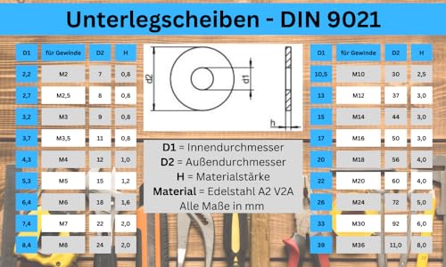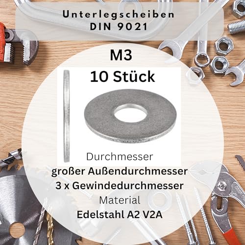 Rondelle M3 (diametro esterno) DIN 9021 ISO 7093, dischi per carrozzeria, A2 V2A, dischi in acciaio inox M3, 10 pezzi