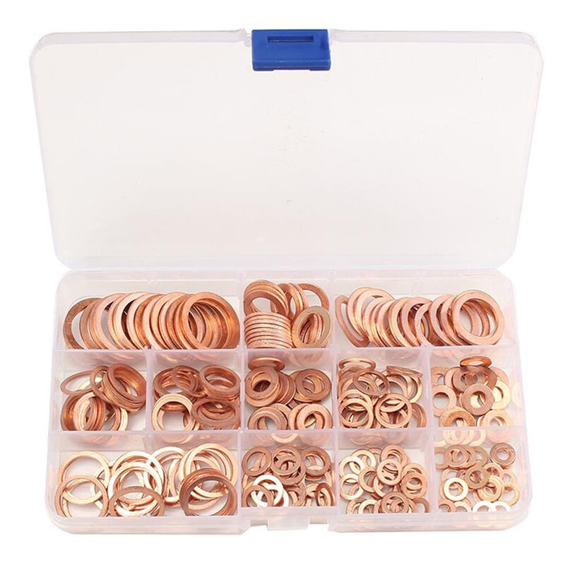 12 DIVERSE TAGLIE: 12 diverse dimensioni di guarnizioni piatte in rame in questo set che puoi utilizzare per scopi diversi AMPIA APPLICAZIONE: Queste guarnizioni in rame sono utilizzate principalmente per distribuire il carico su elementi di fissaggio filettati, utilizzate anche come guarnizioni, distanziatori, pastiglie di usura, dispositivi di indicazione del precarico, dispositivi di bloccaggio e riduzione delle vibrazioni. MATERIALE DI ALTA QUALITÀ: Queste rondelle piatte sono realizzate in rame di alta qualità con una buona conduttività elettrica e termica. UTILIZZATE DA LUNGO TEMPO: Questo set include molte guarnizioni di scarico in rame che possono essere utilizzate a lungo. Quindi non devi andare in un negozio di ferramenta in cerca di lavatrici per un bel po'. TIDY: Le rondelle in rame Yeurié da 280 pezzi sono confezionate in una scatola quadrata di plastica divisa ID*OD*Spessore e quantità: M5*9*1mm 30 pezzi M6*10 *1 mm 30 pezzi M6*12*1 mm 20 pezzi M8*12*1 mm 30 pezzi