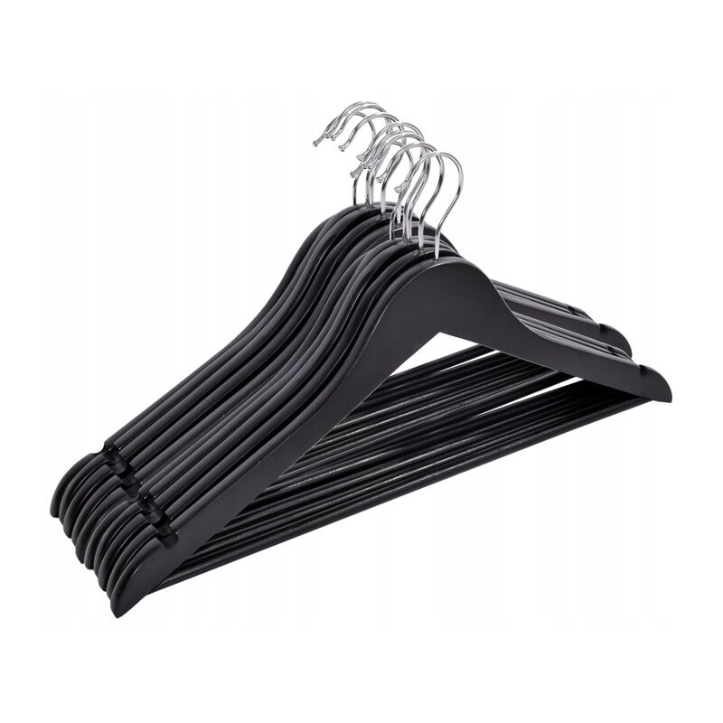Appendiabiti RONDO, set da 10, legno nero Destinazione d'uso: riporre in sicurezza i vestiti | Colore: nero L'appendiabiti Rondo è realizzato in legno di alta qualità. E' stato accuratamente rifinito e protetto con vernice, quindi starà benissimo anche in eleganti boutique di abbigliamento di lusso. A casa, farà in modo che i tuoi vestiti non scivolino perché ha delle rientranze speciali sulle spalle. Una traversa aggiuntiva ti consentirà di appendere ulteriori capi di abbigliamento ed evitare che si sgualciscano. Il gancio della gruccia è realizzato in acciaio inossidabile, cosa che lo distingue notevolmente dalla concorrenza in termini di durata. Proprietà Realizzato in legno naturale Gancio in acciaio inossidabile Tacche alle estremità Traversa in legno Dimensioni Larghezza: 44,5 cm Spessore: 1,2 cm Altezza: 23 cm Numero di pezzi nel set: 10 Informazioni aggiuntive I colori mostrati sono solo a scopo illustrativo - possono differire da quelli reali a causa delle diverse