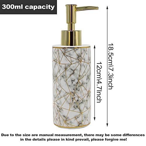 RonFin Dispenser di sapone in ceramica, dispenser di sapone per le mani e per lo shampoo, flacone da 320 ml, per bagno, cucina, lavandino, ufficio, shampoo ricaricabile (marmo bianco)