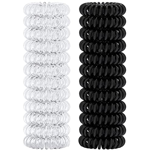 RONGYI 24 Pezzi Elastici a Spirale per Capelli, Stile Molla a Spirale per Colorato Ponytail, Elastici Spirale Cavo Telefonico per Donne e Ragazze, Nero+Trasparente