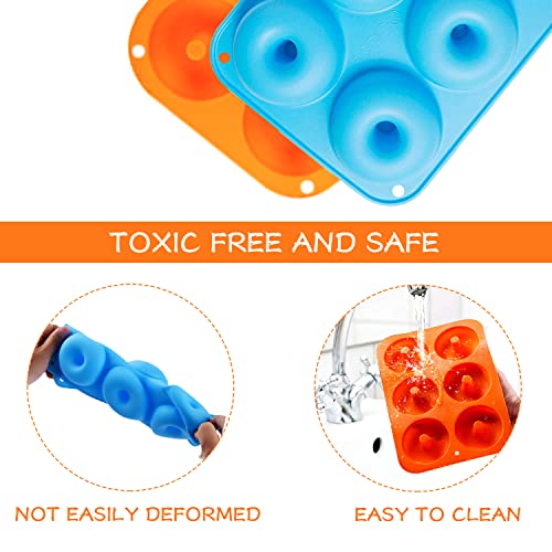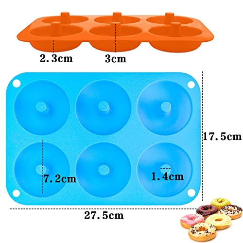 RONGYI Stampo per Ciambelle in Silicone, 2 Pezzi Stampi per Ciambelle Antiaderente, Facile da Pulire 6 Cavità Silicone Ciambelle Stampo Donut Stampo per Creare Ciambelle,Muffin, Cupcake,Blu,Arancione