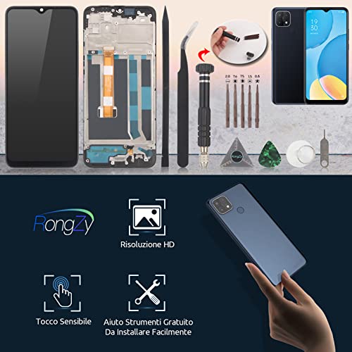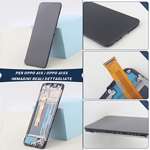 RongZy LCD Display per 6.52" Oppo A15 CPH2185/Oppo A15S CPH2179 Schermo LCD Touch Screen Assemblea Sostituzione di Vetro Digitalizzatore con Strumenti(Nero con Cornice)
