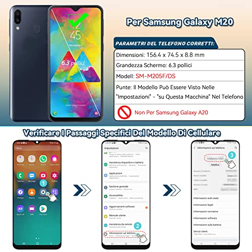 Lo schermo del display è per Samsung Galaxy M20 SM-M205F il display LCD. Assicurarsi che il modello del telefono prima dell'acquisto. Assicurati che il modello del tuo telefono prima dell'acquisto.