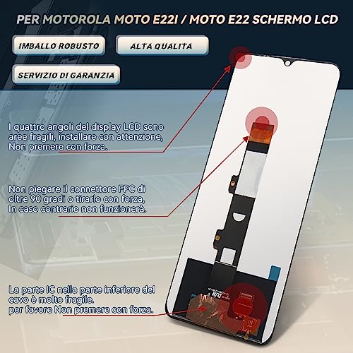 Compatibilità - Display LCD per 6.5" Motorola Moto E22i / Moto E22 2022 Ricambio(Non per Motorola Moto E22S ). Assicurati che il modello del tuo telefono prima dell'acquisto.