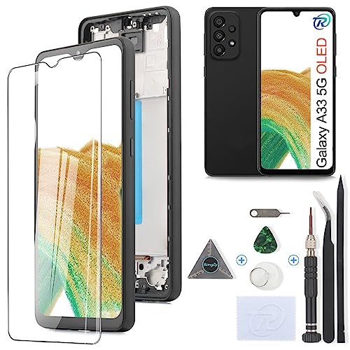 RongZy LCD Schermo per OLED Samsung Galaxy A33 5G 2022 A336 di Ricambio Display Touch Screen Digitizer Parti di Riparazione per Galaxy A33 5G LCD Display con Strumenti(6.4",Nero con Cornice)