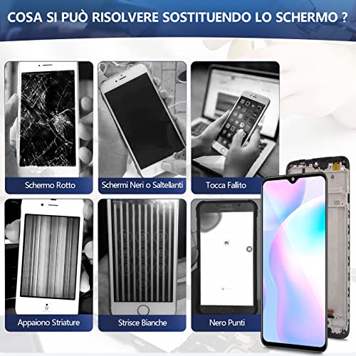 RongZy Schermo per Xiaomi Redmi 9A/Redmi 9C/Redmi 10A Display LCD Touch Screen Digitalizzatore Interno per Redmi 9A/Redmi 9C M2006C3L Sostituzione Assemblea con Strumenti(Nero con Cornice)