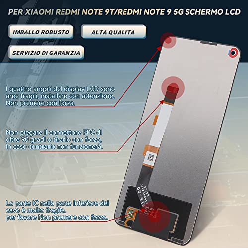 Sostituzione gratuita di 6 mesi per danni non umani. Alta qualità per la sostituzione dello schermo LCD Redmi Note 9T/Redmi Note 9 5G e strumenti di riparazione gratuiti, gli strumenti non sono adatti a tutti i prodotti, alcuni modelli di schermo avranno bisogno di strumenti professionali per riparare il dispositivo.