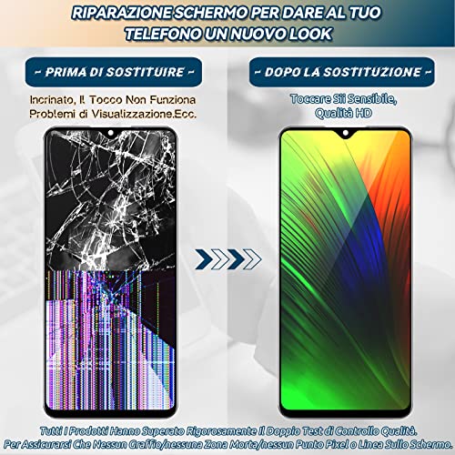 Suggerimenti per l'installazione - Si prega di testare lo Redmi 9/Redmi 9 Prime Ricambio schermo prima dell'installazione, assicurarsi che lo schermo sia normale da usare. Quando si installa lo schermo, fare riferimento alle istruzioni allegate al nostro pacchetto. Non consigliare l'installazione senza alcuna esperienza. Se è necessario il collegamento di Guida video all'installazione, contattaci tramite messaggio Amazon. Ti risponderemo al più presto.