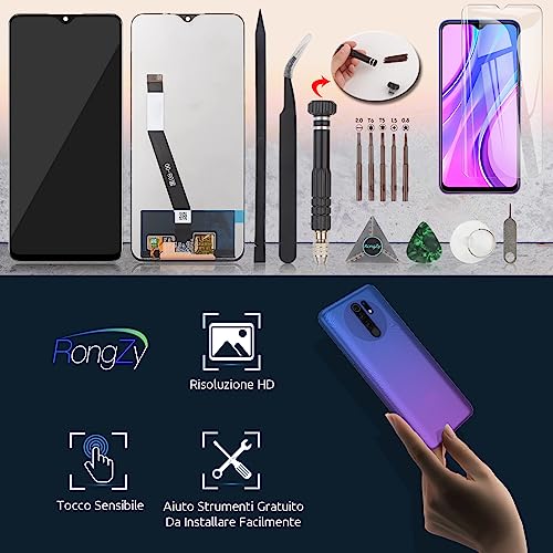 RongZy Schermo LCD per Xiaomi Redmi 9 /Redmi 9 Prime Display Touch Screen Digitizer Parti di Ricambio di Riparazione con Strumenti (Non per Redmi 9A/9C)