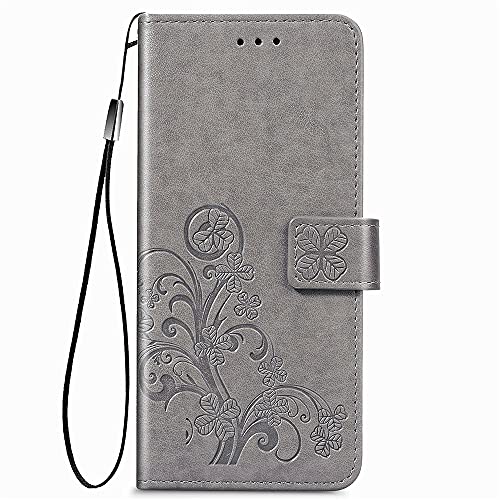 RonRun per Cover alcatel 1S 2021/3L 2021 Flip Caso in PU Pelle Portafoglio Custodia Portafoglio Magnetica Stampa quadrifoglio Cover per alcatel 1S 2021/3L 2021 Grigio
