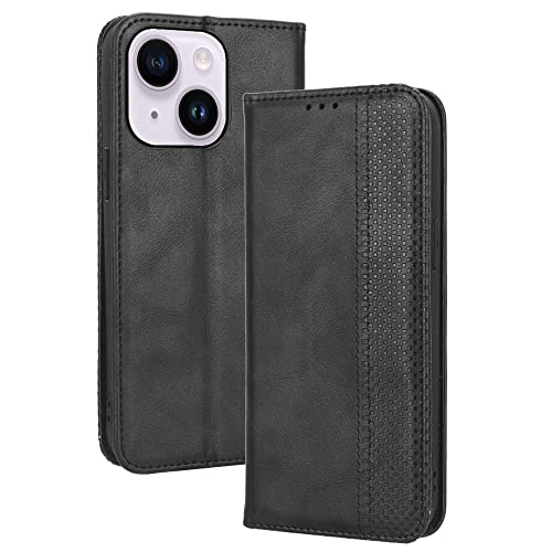RonRun Cover Apple iPhone 14, Custodia a Libro con Supporto Stand e Slot Porta Carte Case a Portafoglio Magnetica in Pelle PU Adatto per Apple iPhone 14, nero