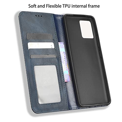 RonRun Cover Motorola Moto G72, Custodia a Libro con Supporto Stand e Slot Porta Carte Case a Portafoglio Magnetica in Pelle PU Adatto per Motorola Moto G72, blu