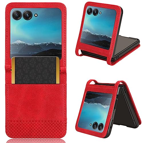 RonRun Cover Motorola Razr 40 Ultra, Custodia a Libro con Supporto Stand e Slot Porta Carte Case a Portafoglio Magnetica in Pelle PU Adatto per Motorola Razr 40 Ultra, rosso