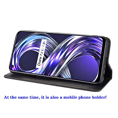 RonRun per Cover Realme 8i Custodia Pieghevoli con Supporto Stand e Slot Porta Carte Case a Portafoglio Magnetica in Pelle PU Adatto per Realme 8i Nero