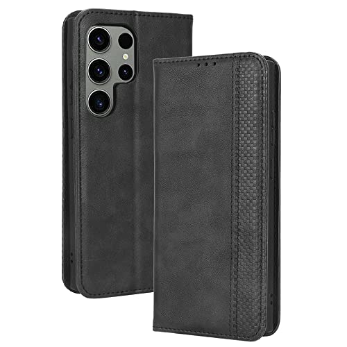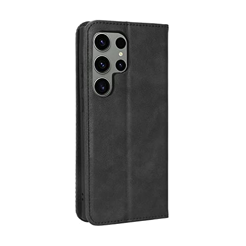 RonRun Cover Samsung Galaxy S23 Ultra, Custodia a Libro con Supporto Stand e Slot Porta Carte Case a Portafoglio Magnetica in Pelle PU Adatto per Samsung Galaxy S23 Ultra, nero