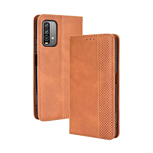 RonRun per Cover Xiaomi Redmi 9T Custodia pieghevoli con Supporto Stand e Slot Porta Carte Case a portafoglio magnetica in pelle PU Adatto per Xiaomi Redmi 9T Marrone