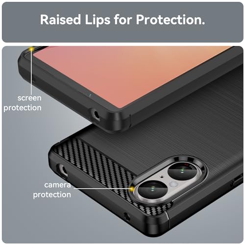 RonRun Cover per Sony Xperia 5 V, Custodia Fibra Carbonio Silicone Antiurto Morbido Paraurti in TPU Custodia Protettiva Case - Nero