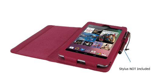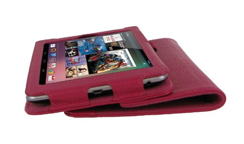 RooCASE-Custodia in pelle modello "Vegan”, con angolo Custodia a portafoglio per Google Nexus 7 Tablet, colore: nero/rosso Magenta/versione riveduta, con altoparlanti, porte e barra di notifica Rosa rosso Google nexus 7