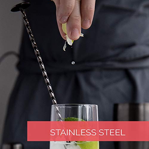 Root7, Cucchiaio da cocktail in acciaio inossidabile 18/8, con manico a spirale, 26 cm di lunghezza, con presa facile, rivestito in titanio, strumento per baristi