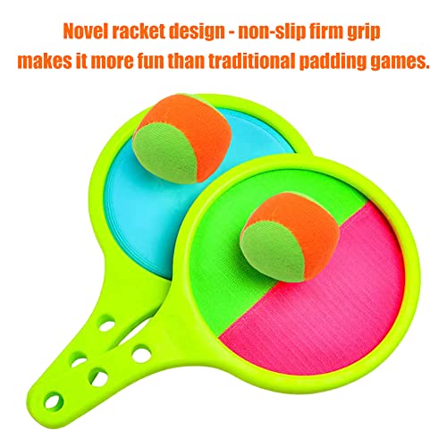 Ropniik Green Ball Set Ball Game per bambini, Paddle Fang Ball e Lancio Game Set Green Catch Paddle, gioco adatto per sport (2 pagaie e 3 palline)