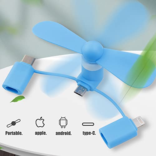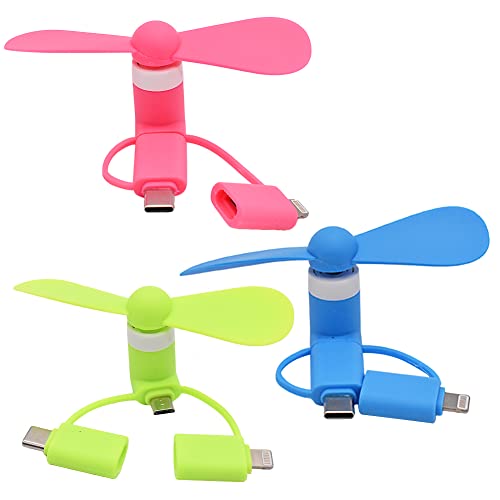 Ropniik 3 mini ventole per cellulare, mini ventola USB portatile 3 in 1 per telefoni Android/USB di tipo C e altro ancora, ventola rotante (rosso/blu/verde)