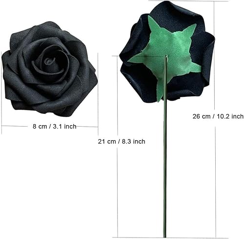 Roqueen 25 Pezzi Fiori Rosa Artificiali Rose Schiuma Finte con Steli per DIY Nozze Nuziale Mazzo Centrotavola Arrangiamenti Festa Bambino Doccia Casa Decorazioni (Nero)