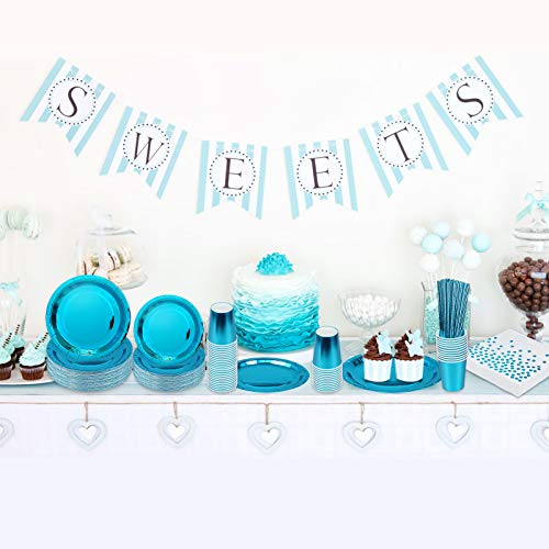 【Stoviglie per feste di compleanno blu da 120 pezzi】 Include 48 piatti (24 piatti da 9 pollici e 24 piatti da dessert da 7 pollici), 24 bicchieri di carta, 24 tovaglioli e 24 cannucce.