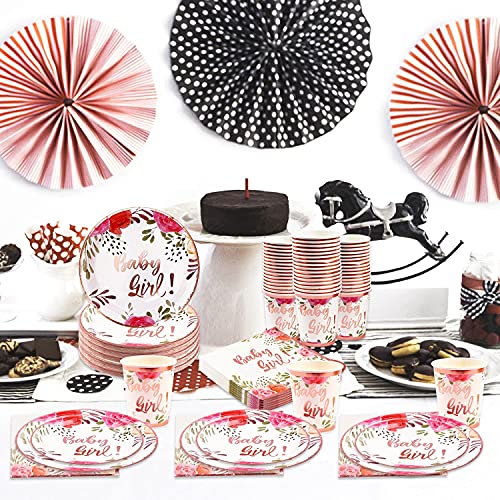 【Baby Shower Girl Piatti】Piatti di carta per feste mescola eleganti motivi floreali e luminose foglie in oro rosa;
