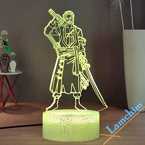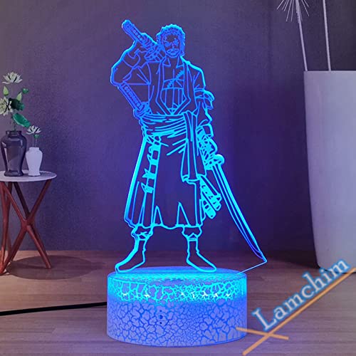 Roronoa Zoro - Luce notturna 3D per bambini, anime 16 colori telecomando Smart Touch, lampada da notte a LED, Cool Camera Decorazione per lampada da tavolo da ufficio ragazzi adolescenti