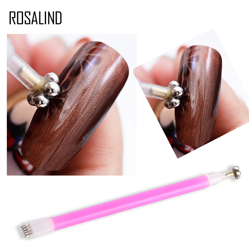 ROSALIND Dual-Ended Magnet Stick For Gel Nail Polish 3D Strip Grid Flower Pattern Magnet Pen Design Nail Gel Varnishes Manicure