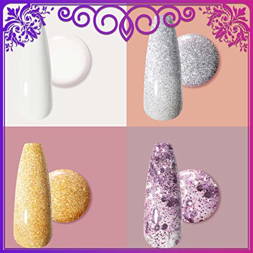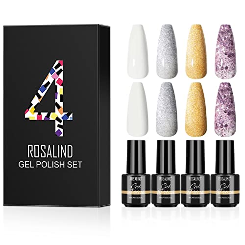 ROSALIND Smalto Semipermanente per Unghie 4 Colori, Glitter Colore Rosa Argento Dorato, Set Semipermanente Unghie, 7ml UV Gel Unghie Smalti per Unghie Nail Art 4Pcs
