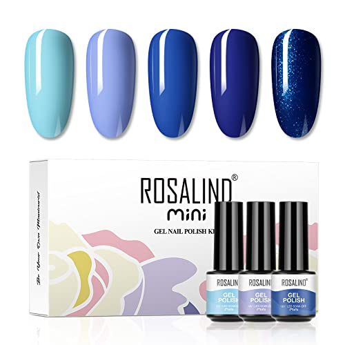 ROSALIND Smalto Semipermanente Per Unghie Set (5pzs) Blu UV LED Set Manicure,Mini