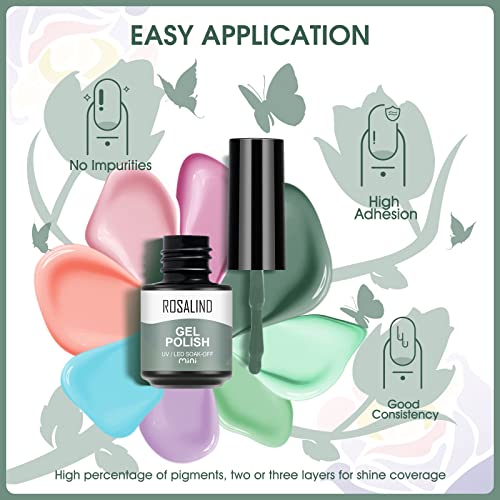 ROSALIND Smalto Semipermanente Per Unghie Smalti per Unghie Set (12pzs) Smalti Semipermanenti Per Unghie Kit UV LED Set Manicure Mini e Top Matte Base Coat Nail Art Set 16 Pzs