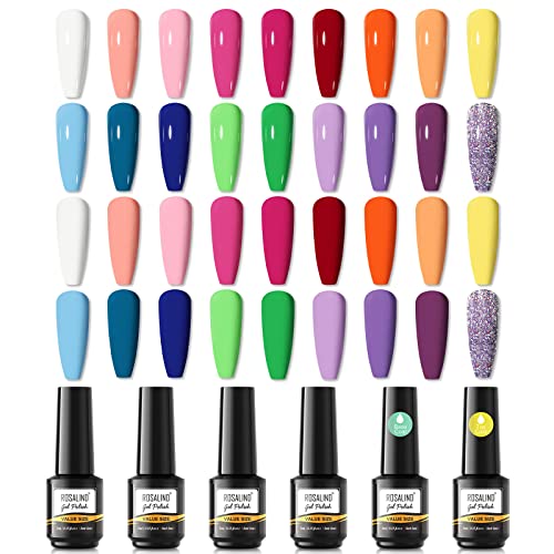 Smalto per unghie in gel 18 colori, 2 Pcs Base e Top Coat kit. ROSALIND 7ml set smalto gel blu glitter viola classico e alla moda, è adatto per tutte le stagioni, tutte le occasioni o tutti i giorni, lavoro, festa. Come regalo eccellente per fidanzata, madre e amici.